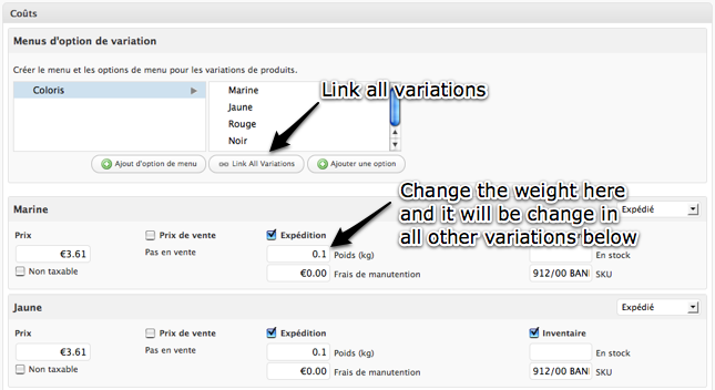 As you can see in the image above, the first variation has a small background with rounded corners (css3). Of course you can style the list like you want, it's just an exemple... You may have to change the css to fit in your template.So, I hope this quick tutorial will help you to display your products variations.